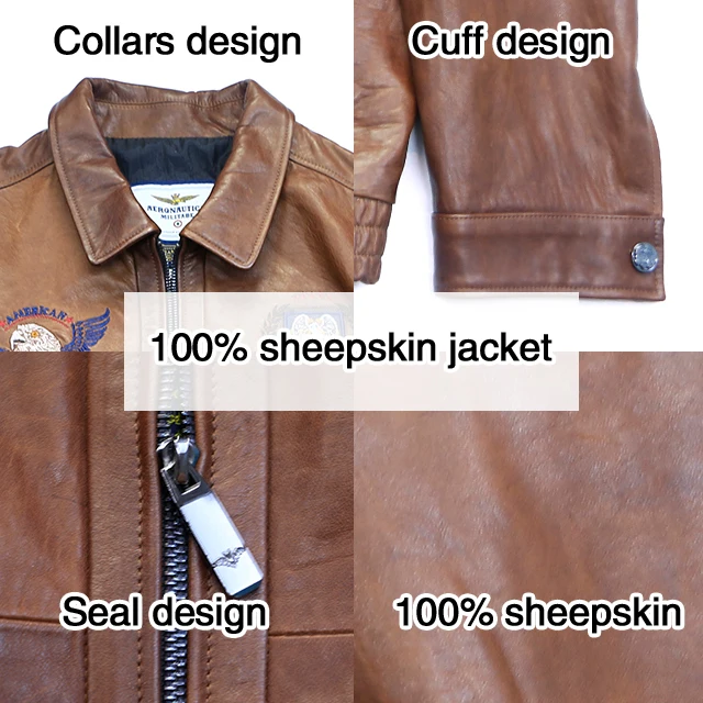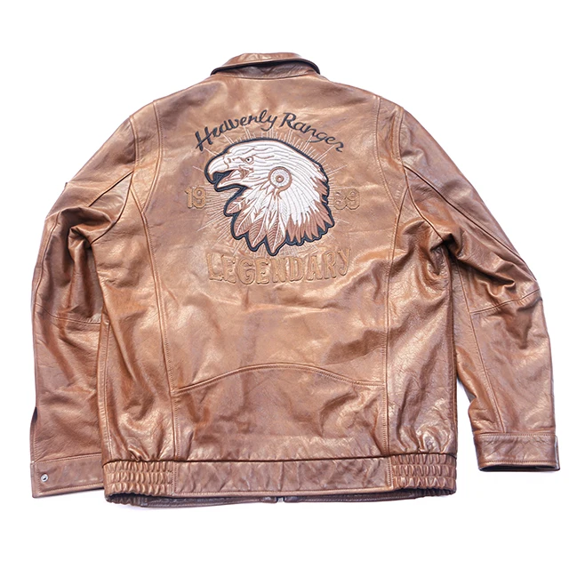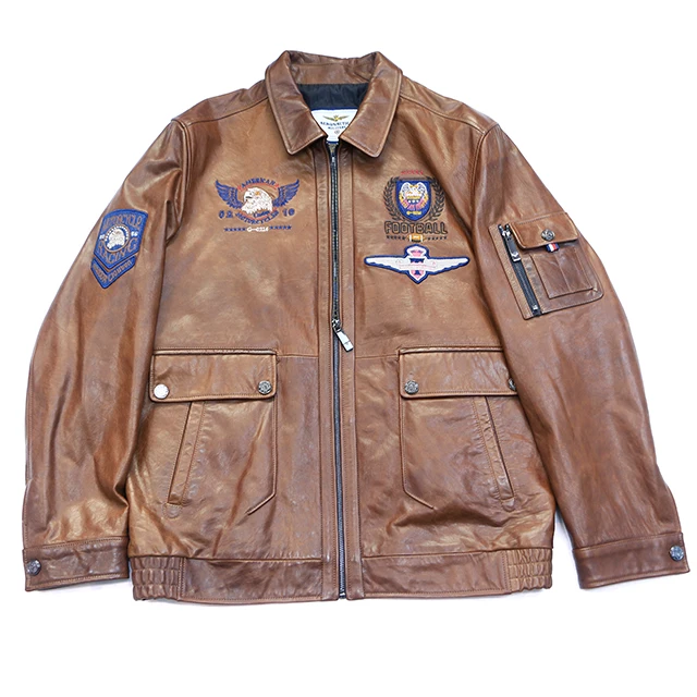 Classic Embroidery Leather Jacket Men Aviation Fight Coat Genuine Cowhide Natural Leather Clothing Motorcycle